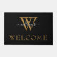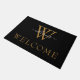 Simple Black Gold White Script Monogram Welcome Doormat