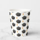 Cute and simple graduation party paper cups with a pattern of black graduation caps with a gold tassel. Great for your graduation party! Illustrated and designed by Patricia Alvarez.
