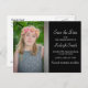 Personalised black graduation "Save the Date" postcard.