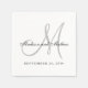Modern Simple Minimal Black and Grey Monogram Wedding Paper Napkins for weddings and anniversaries. Design by Elke Clarke ©. Available at www/zazzle.com/monogramgallery. Elegant script fonts. Customise with your bride and groom names, wedding date and wedding colours.