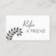 A simple and elegant design containing a leaf on the front in classic black and white. Refer a friend to your business. View additional referral cards in our Zazzle store!