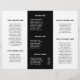 Professional and modern trifold brochure with a simple yet elegant design in black and white. The front panel has your logo and business name. The back panel has your contact information and the inner fold panel has two headers and text boxes. Use the template to add information about your business on the outer panels and a price list / service menu in the middle panel. DESIGN TIP: You may change the text and background to any colour you wish by clicking the "customise" button.