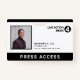 Basic press pass photo ID badge in a horizontal layout with a simple yet professional design featuring a black border on the top and bottom. The template is personalised with your logo, press publication name, employee name, title and expiration date. The bottom border has "PRESS ACCESS" in large bold letters and may be changed to any title desired. The backside has your contact information and instructions for returning if found. This classic design is great for all news station field staff.