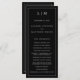 Modern Wedding Program featuring a simple yet elegant design with a traditional layout. Your two letter monogram is at the top along with your details surrounded by a thin border. All design elements are white over a black background and may be changed in the design editing tool. A minimalist design with a classic feel that is great for a formal wedding.