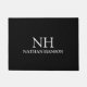 Modern business door mat featuring a simple and minimal black and white design with your monogram in a bold font along with your name.