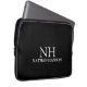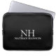Modern laptop sleeve featuring a simple and minimal black design with your monogram in a bold font along with your name.