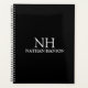 Modern business planner featuring a simple and minimal black design with your monogram in a bold font along with your name on the front. The back has your contact info.