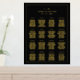 Simple black with gold foil wedding seating chart featuring an elegant and timeless design with your two letter monogram along with your names, date and seating chart surrounded by a thin border. All design elements are printed in real foil. The template has four columns with sixteen tables of eight guests as an example, but can be customised for your number of tables and guests. A clean and classic design perfect for a couple who wants a traditional style design with a modern touch.