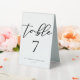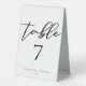 Simply chic and stylish, our minimalist winter wedding collection features elegant cursive typography for your modern reception. Guide your guests to their table with eye catching bold black script on a white table tent sign with your table number.