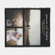 Modern fleece blanket featuring a simple and minimal design with a photo collage of three of your favourite wedding pictures over a black backgound. Above are your names in an elegant script along with your wedding details.