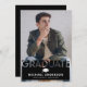 Trendy black graduation announcement card featuring a picture of the graduate, a motarboard, and a modern text template that is easy to personalise.