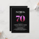 Invite your friends and loved ones to a surprise 70th birthday celebration with this stylish minimalist black and pink birthday party invitation.