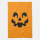 Simple Black Pumpkin Face On Orange Halloween Tea Towel