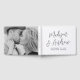 Add a personalised touch to your wedding ceremony with this Simple Black Script guest book. The design features your names displayed in an elegant black calligraphy script with your wedding date and location shown below. Add your custom text to the spine of the black and white guest book. The back of the guest book features your horizontal engagement photo.