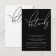 Minimalist Black and White Script Typography Wedding Details Cards - Classic Elegance in a Dark Aesthetic. Elevate your wedding announcement with our modern black-and-white script typography details cards, a timeless choice for your special day. These details cards seamlessly combine classic and elegant design elements with a dark aesthetic, creating a striking contrast that sets a formal and sophisticated tone. The simplicity of the black-and-white colour scheme and the elegance of the white typography make these detail cards a perfect choice for couples seeking a simple yet impactful statement. Choose this invitation to let your love shine in a classic and modern fusion