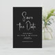 Looking for a modern and simple way to announce your big day? Our minimalist Save the Date invitation is perfect for introducing your guests to your wedding day. Featuring classic white typography on a black background that can be personalised, the backside also includes a QR code for guests to scan and visit your website for more details about the event. This stylish and practical design is sure to impress and let your loved ones know you're getting married.