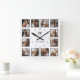 Simple Black & White 12-Photo Collage Initial Name Square Wall Clock