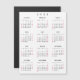 Custom, beautiful elegant script typography, simple plain black and white, 2025 full year, home room office decor, cool, thin, postcard size, yearly calendar magnet, for any magnetic surface at home or office. Makes a great custom gift for friends, family, peers, co-workers, for holidays, christmas, new years.