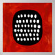 A bold black shape filled with evenly spaced white ovals is set against a vibrant red background. The simplicity and contrast create a striking visual effect.
