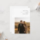 Capture the essence of your love with this Simple Black & White Boho Photo Wedding Invitation. The design blends a modern, romantic feel with rustic elegance, featuring a stunning black and white palette that perfectly complements the natural outdoor photo. Handwritten calligraphy adds a timeless touch, while the minimalist layout ensures the focus remains on your special moment. Whether planning a casual, country ceremony or a chic sunset celebration, this invitation sets the tone for a wedding that is both stylish and heartfelt. The simple yet elegant design speaks to the beauty of nature and the love shared, making it the perfect choice for couples seeking a contemporary, rustic invitation that resonates with warmth and charm.