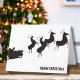 This Christmas print has a simple and modern take with the black silhouette of Santa, his sleigh and reindeer. The background can be changed to the colour of your choice if you want. Customise all of the text. Great for families or business uses!