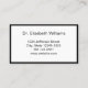 This professional doctor's appointment card is double-sided. Both sides have an elegant black border. Side one has a line of display text for the doctor's or medical practice name. The second line of display text says "Your Next Appointment". Side two also has lines for the date and time of the appointment. At the bottom, there's display text you can edit to create a custom message if desired. (Shown: Kindly provide 24 hours notice if unable to keep your appointment.) Side two has display text to replace with the doctor's name (or practice name) and its address, phone number, and website. All text can be edited or deleted. The text is black.