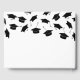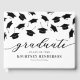 Modern graduation party guest book featuring a simple white background that can be changed to any colour, falling black mortarboard caps, and a modern text template that is easy to personalise.