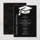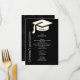 simple script black & white graduation party dinner menu, click the personalised button to add all your details.