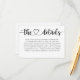 Elegant and modern enclosure card designed to hold all your essential wedding details. Featuring bold black and white calligraphy with a charming heart accent, this minimalist insert adds a stylish touch to your wedding invitation suite. Perfect for modern, classic, or black-and-white themed weddings. Fully customizable and easy to edit, making it ideal for directions, accommodations, registry info, and schedule details