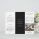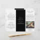 Modern photography trifold brochure featuring a simple design with a photo on the bottom and your details in a handwritten font on the front panel. The middle panels are black and the outer panels are white. The outside has a template for "About Us", "Our Mission" and "Contact Us". The inside has multiple templates for information about your business on the outer panels and a price list in the middle panel. This minimalist design is great for a professional photographer.