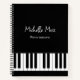 Black and white piano lessons notebook, with a simple keyboard design and customizable lettering. Great for your music lessons and practice notes.