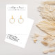 This earring display card is the perfect way to stylise your packaging and add your own personal flair and personality. It depicts a bold modern font paired with a chic handwritten cursive black typography on top of a simple white background. On the back, it includes contact information that can be changed completely or personalised to your details. It's a professional, elegant, and stylish way to display your product with pride. (earring holes are printed markers only, puncturing must be completed by the customer)