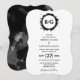 This design features an elegant yet simple arrangement of the bride's and groom's personalised initials. The couples names are encircled with a black watercolor ring. This black and white design is simple yet elegant in every way. The reverse displays splashes of black watercolor. This simple colour combination creates a sophisticated, trendy and chic style. Elegant wedding invitation design with modern elements. The simple setup of the typography gives it a distinct style. Matching wedding stationery items and other wedding invite formats are also available.