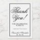 These mini wine bottle labels feature a design that is simple yet elegant with lacy black calligraphy on a white background with a framed border. Perfect addition to a wedding swag bag, or as favors for guests, family and members of your wedding party. The text reads: Thank you for celebrating with us! There is space for the couple's names, wedding date, and the type of wine or bottle contents.