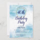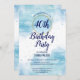 Simple blue abstract watercolor splash with glitter birthday party invitation. Nice for winter period parties. Simple, elegant, suitable for women and men.