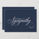 Personalize this simple elegant memorial sympathy card template on a classic navy blue background with your custom message and name. Design features the text "With Deepest Sympathy" in classic black elegant script calligraphy on the front of the card. With customizable text on the back of the card. Easy to customize text.