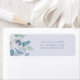 Beautiful and chic powder blue watercolor floral wedding return address labels feature an airy bouquet and pastel blue background with your custom wedding return address.