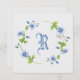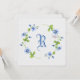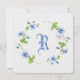 blue floral watercolor wreath design on soft white textured background with personalised monogram for wedding anniversary party