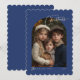Simple Blue Merry Christmas Script Photo Scalloped Holiday Card