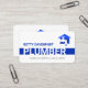An all white cover features a blue striped layer that houses your business name "PLUMBER". (Change the caption to suit your needs). Just above this lies your prestigious name and a home faucet logo you can use. Near the base is a slogan caption option which you can also change.