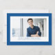 This simple and sophisticated graduation announcement features one horizontal photo on the front surrounded by a bright blue frame with a herringbone tweed effect. The fabric look (please note it's not real fabric) gives this design - which doubles as a graduation invitation too - a classic academic style and the simple type is the perfect personalised touch. The back of the card is a matching classic blue pattern with room for a second photo and graduation party invitation text. The text and photo can also be left blank. This original grad card by Lea Delaveris Design is also available as a digital graduation announcement and invitation download and can be found in a variety of colours in the herringbone tweed grad collection.