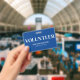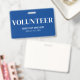 A simple and professional volunteer badge design, perfect for events, businesses, or organisations that rely on volunteers. "Volunteer" is prominently displayed at the top, with space below for the event or business name and date.