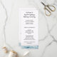 Tall, double-sided, coastal marriage ceremony program template. Simple, very pale grey cards with blue water image along the bottom on both sides. Casual printed font style for all ceremony information and modern script for the title and message. The program is perfect for a small marriage celebration near water or on a ship.