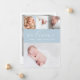 A modern birth announcement to announce the arrival of your newborn baby boy . The simple design features a blue card on the front with welcome in a white handwritten script font with a photo collage. The reverse side is white with one large photo. Personalise with baby's name, birth date, birth stats and parent's names.