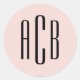 Simple Blush and Black Three Letter Monogram Classic Round Sticker