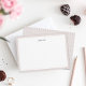 Our chic personalized stationery flat cards have a pale blush pink border with your name or choice of personalization gracing the top in charcoal gray calligraphy script lettering. Cards reverse to a delicate trellis pattern.