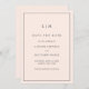 Simple blush pink save the date card featuring a modern yet elegant design with your two letter monogram at the top and your wedding details surrounded by a thin border. The fonts and background colours may be changed to any colours you wish. A chic and stylish design that is great for a minimalist couple.