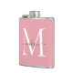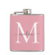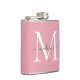 Simple Blush Pink White Grey Monogram Script Name Hip Flask