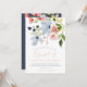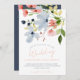 Simple Boho Blue and Pink Floral Wedding Invitation