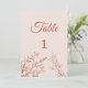 The design features modern minimalist delicate flowers against a light background. If you want to order more, personalise and order each sign with the table number.